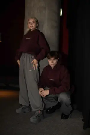 Šis oversized pūkio džemperis su gobtuvu pagamintas iš storo trikotažo su pūkeliu (65 % medvilnės, 35 % poliesterio, 320 gr.) – audinys pasižymi lygiu, gražiu mezgimu, subtiliu blizgesiu ir išskirtiniu švelnumu. Net po skalbimo vidinė pusė tampa dar minkštesnė – tarsi „tedis“ – ir nemeta pūkelių. (Lengvas pūkelio sluoksnis nueina iki pirmo skalbimo).